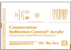 Tru Vue ConservationReflectionControl®丙烯酸具備保護級且排除眩光的丙烯酸。這款丙烯酸產品採用保護級紫外線過濾技術,可提供98%的紫外線防護,防止褪色,並且具有啞光效果,散射光線,減少不必要的眩光。 |